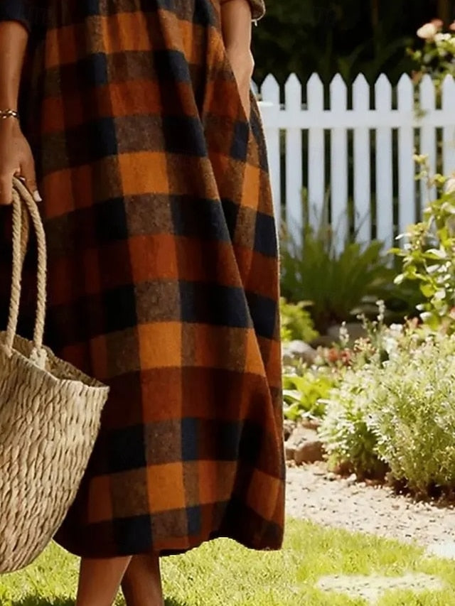 Dresses Type: Casual Dress, Shirt Dress, Fabric: 95%Polyester 5% Spandex, Gender: Women's, Design: Print, Occasion: Beach, Outdoor, Daily, Vacation, Style: Basic, Fashion, Modern, Print Type: 3D Print, Fit Type: Regular Fit, Dress Length Type: Maxi Dress, Neckline: V Neck, Sleeve Length: 3/4 Length Sleeve, Elasticity: Inelastic, Look After Me: Hand wash, Dry clean only, Machine wash, Pattern: Plaid, Season: Summer, Fall, Spring,