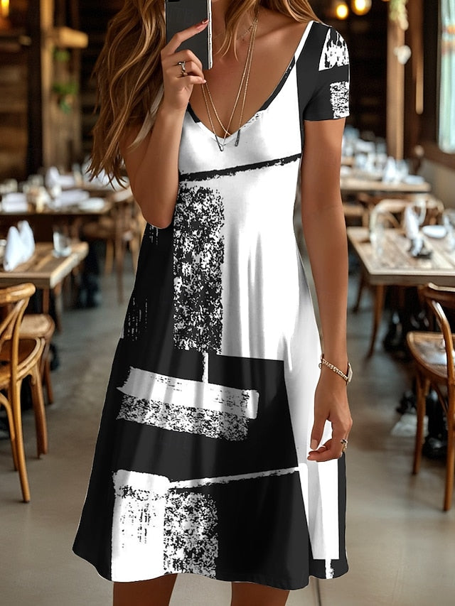 Dresses Type: Summer Dress, Casual Dress, Knit Dress, Sundress, T Shirt Dress Tee Dress, A Line Dress, Fabric: Polyester, Gender: Women's, Design: Print, Style: Vacation, Casual, Category: Dresses, Fit Type: Regular Fit, Dress Length Type: Mini Dress, Neckline: V Neck, Sleeve Length: Short Sleeve, Elasticity: Stretchy, Look After Me: Hand wash, Machine wash, Dress Length: Above Knee, Pattern: Graphic, Abstract, Geometric, Season: Summer, Spring,
