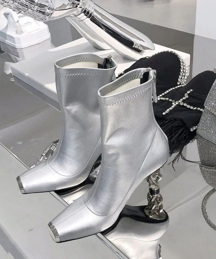 2024 New Versatile Silver Zipper Metal Heterotypic High Heel Boots OI067