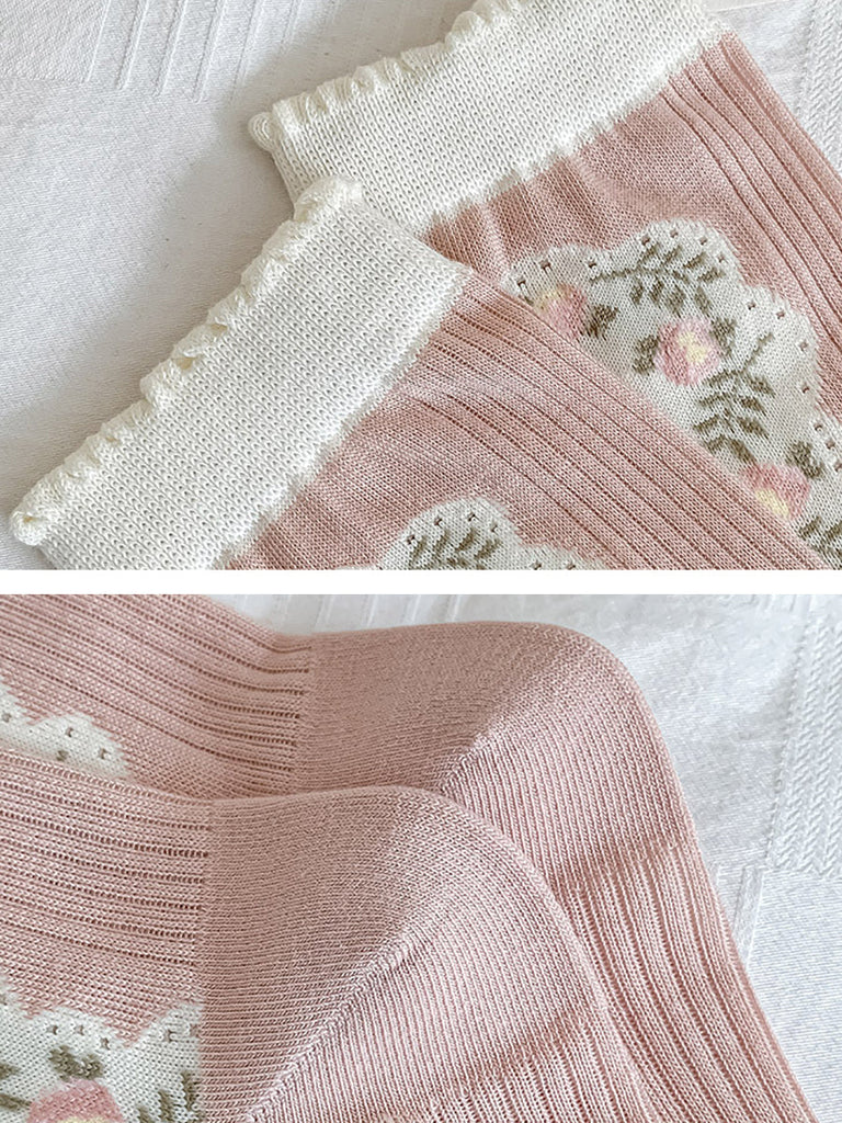 3 Pairs Women Elegant Flower Lace Spliced Thin Socks ZZ1010