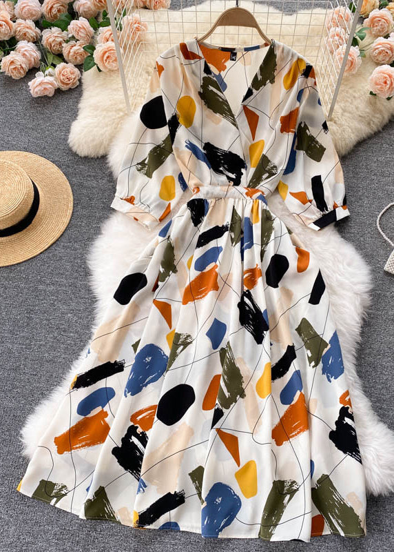 Imagine if you could be satisfied and content with your purchase. That can very much be your reality with the Beautiful Black V Neck Print Chiffon Dresses Half Sleeve TR040.