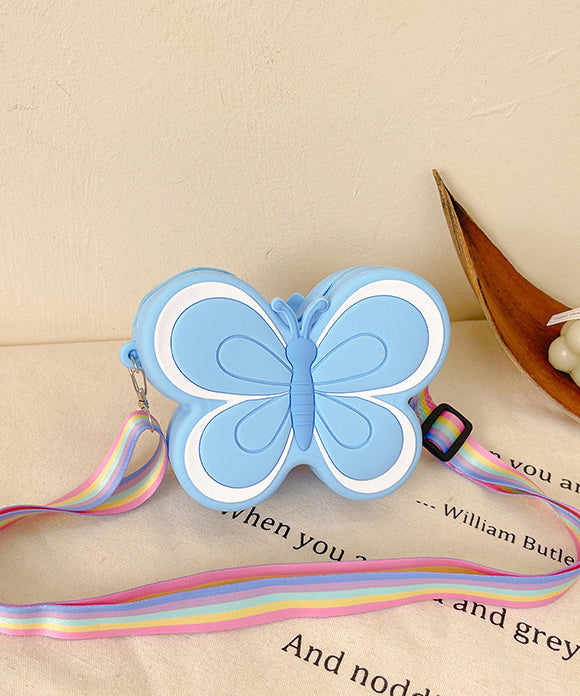 This messenger bag, designed for kids, features a lovely purple butterfly design. Perfect for young girls!This bag is made of fine Silica Gel fabric.