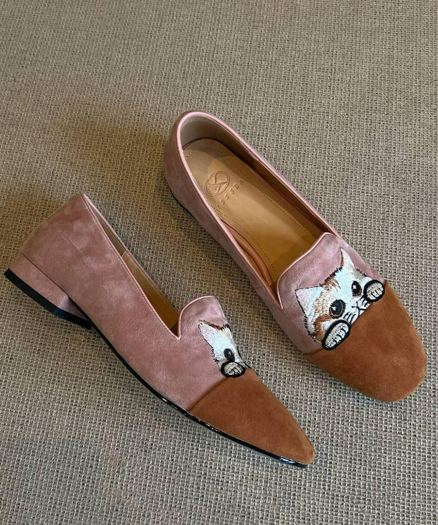 Beautiful Splicing Penny Loafers Brown Suede Embroidered YC015