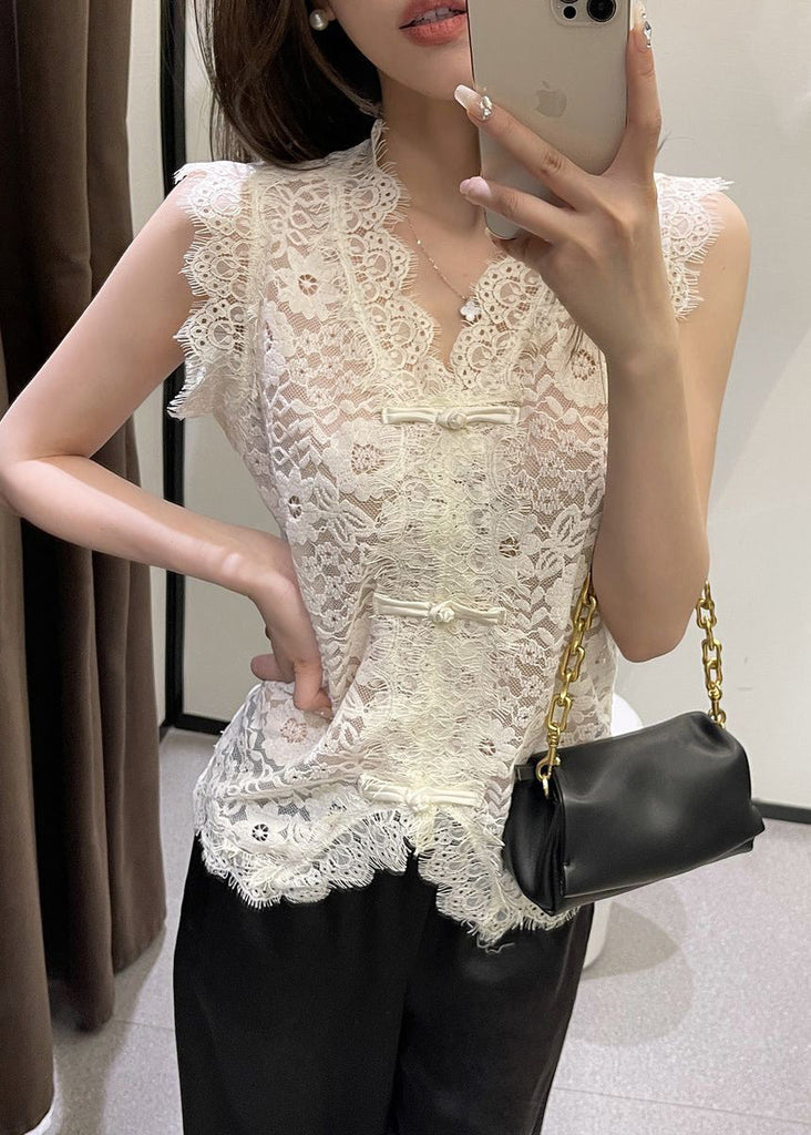 Experience the ultimate in summer fashion with our Beige V Neck Button Lace Vest VB1069. This versatile and stylish piece is perfect for any occasion, whether dressed up or down. The delicate lace detailing and flattering v-neck neckline add a touch of elegance, while the button closures provide a secure fit. Stay cool and stylish all summer long with this must-have vest.