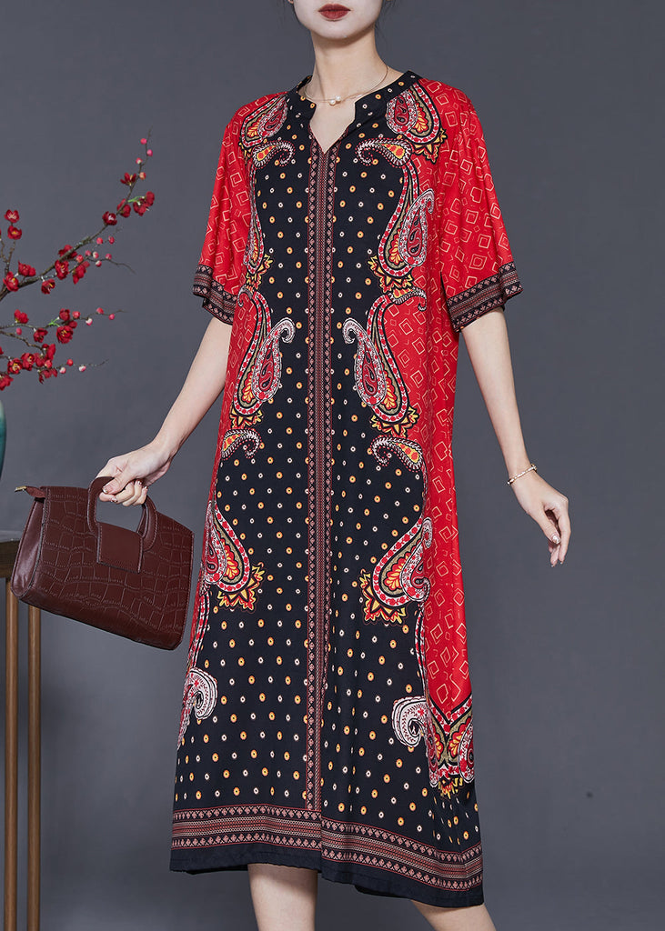 Boho Red V Neck Print Chiffon Holiday Dresses Summer SD1063