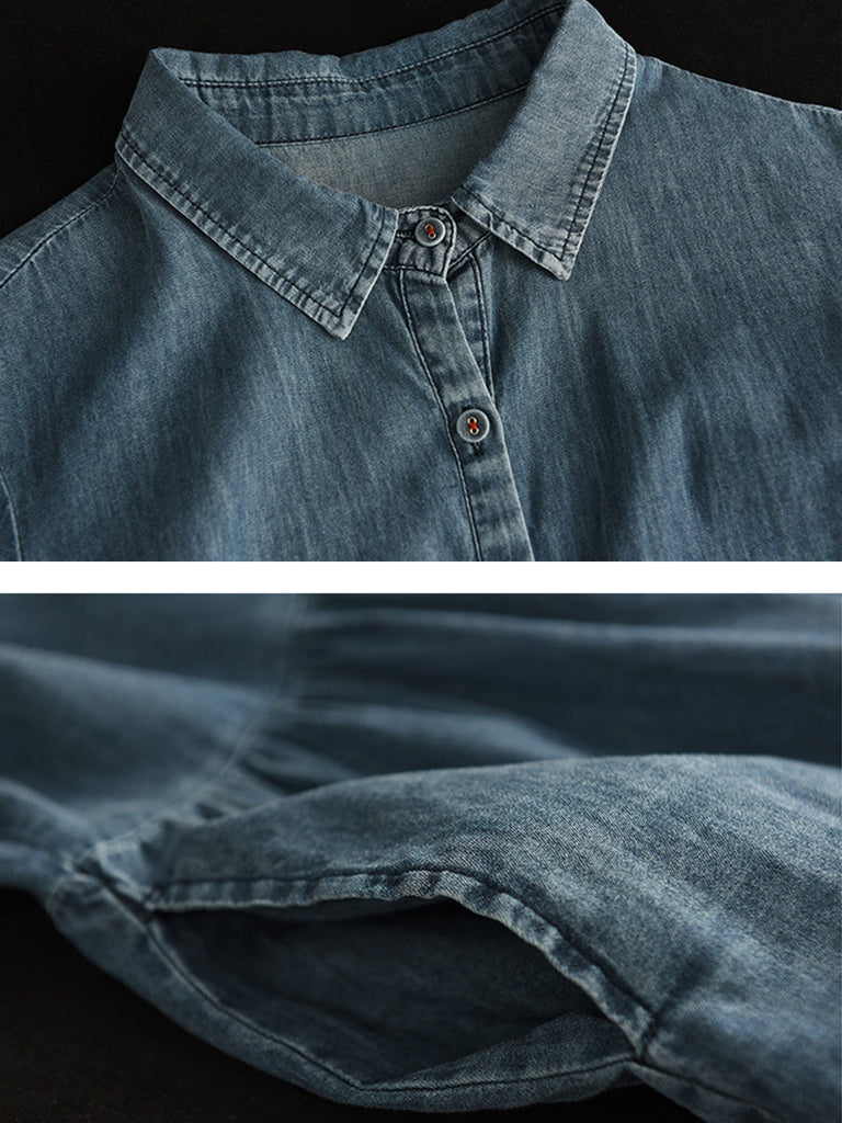 Women Summer Casual Solid Button-up Pleated Dress LL024