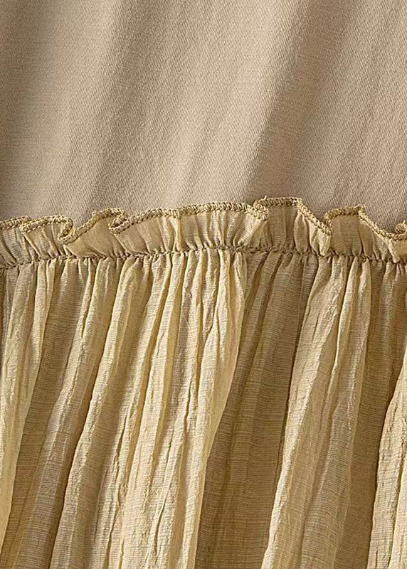 Casual Colorblock O Neck Ruffled Patchwork Cotton Dresses Summer QQ1045