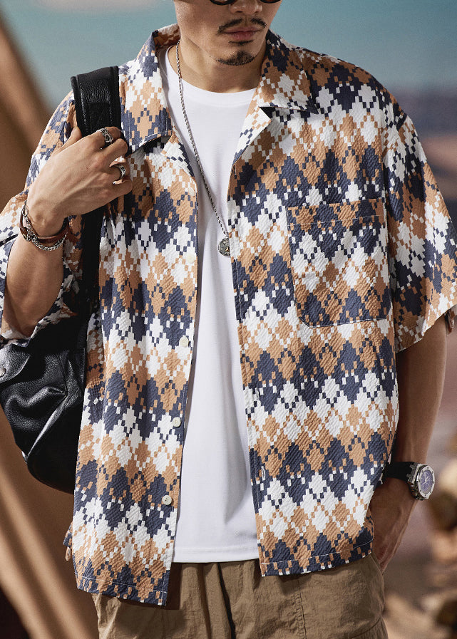 Life is too short to live without the Casual Peter Pan Collar Print Cotton Mens Shirts Short Sleeve HG025. Be happy. Be Content. Be Satisfied.