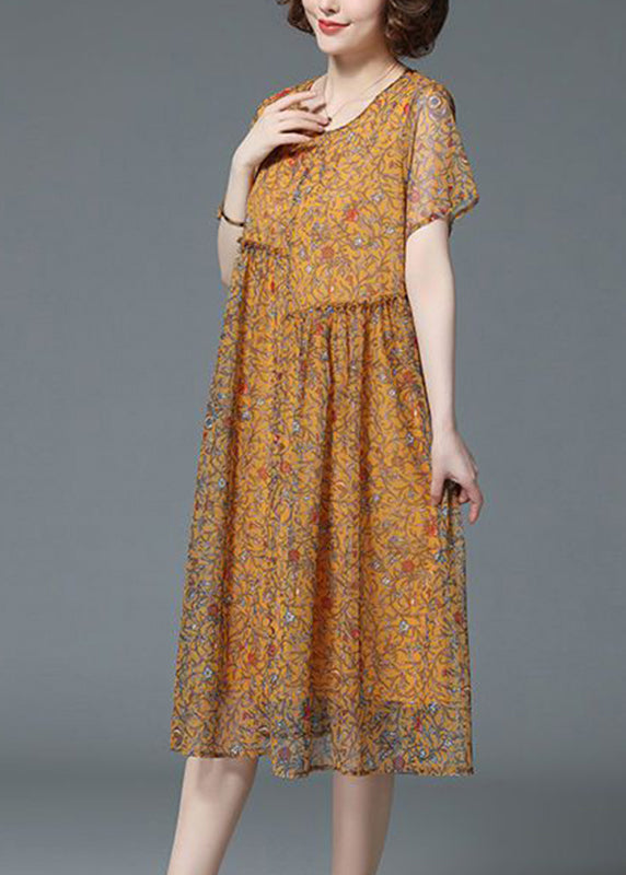 The Casual Yellow O-Neck Print Patchwork Tulle Long Dresses Summer VB1020 is evocative, to say the least, but that's why you're drawn to it in the first place.
