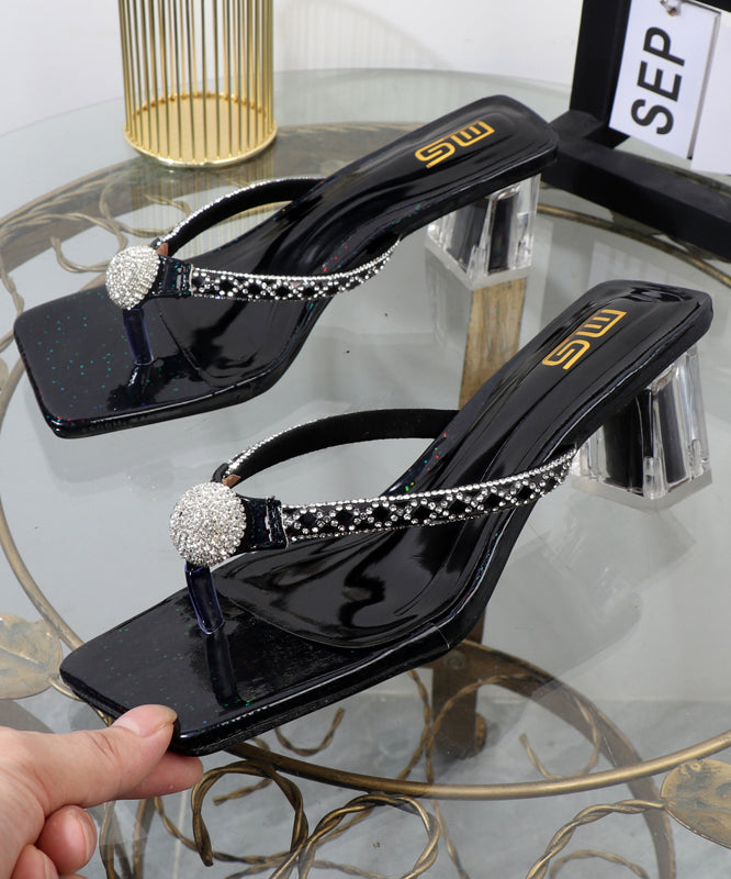 Expertly crafted with a chic blue faux leather material and a stunning zircon accent, these chunky heel flip flops are the perfect addition to any fashion-forward wardrobe.