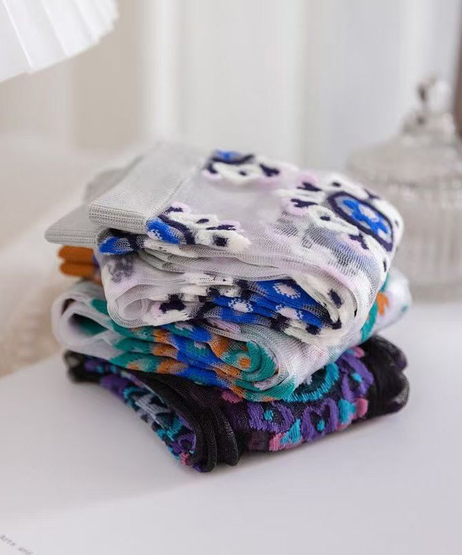 Chic Jacquard Sheer Mesh Mid Calf Socks KJ046