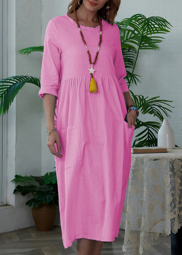 The Cozy Blue Ruffled Pockets Cotton Dress Half Sleeve FF057 is evocative, to say the least, but that's why you're drawn to it in the first place.