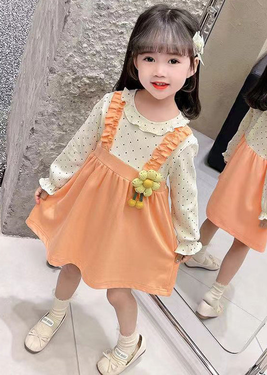 Cute Orange Ruffled False Two Pieces Cotton Girls Dress Fall XZ062