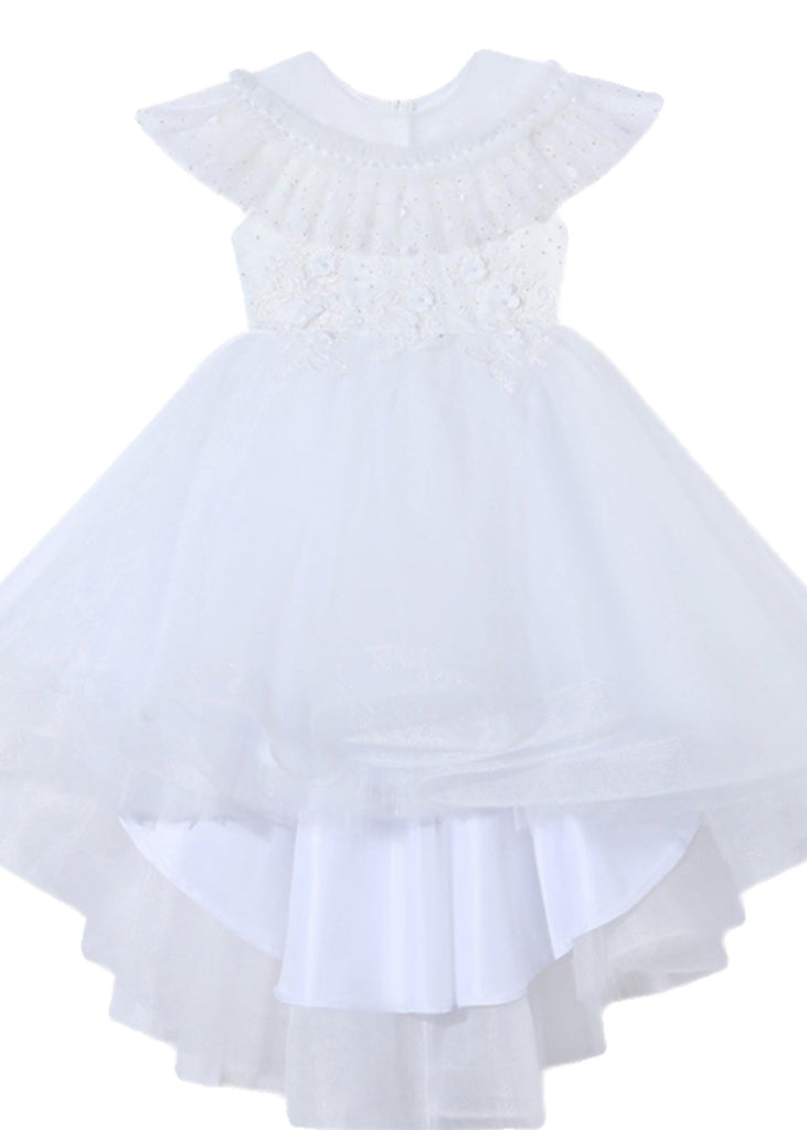 Dinner White O-Neck Floral Kids Tulle Party Maxi Dress Summer XZ026