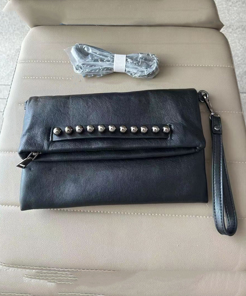 DIY Black Rivet Chain LinkedFaux Leather Satchel Handbag UU1091 Bag-BGS240527