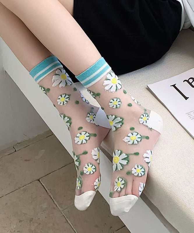 DIY Floral Jacquard Sheer Mesh Mid Calf Socks KJ047