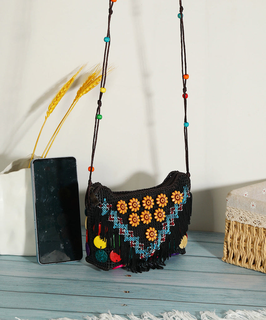 Expertly crafted with ethnic flair, this handmade crossbody bag features a unique and intricate woven design using natural coconut shells. The perfect accessory to add a touch of cultural style to any outfit.