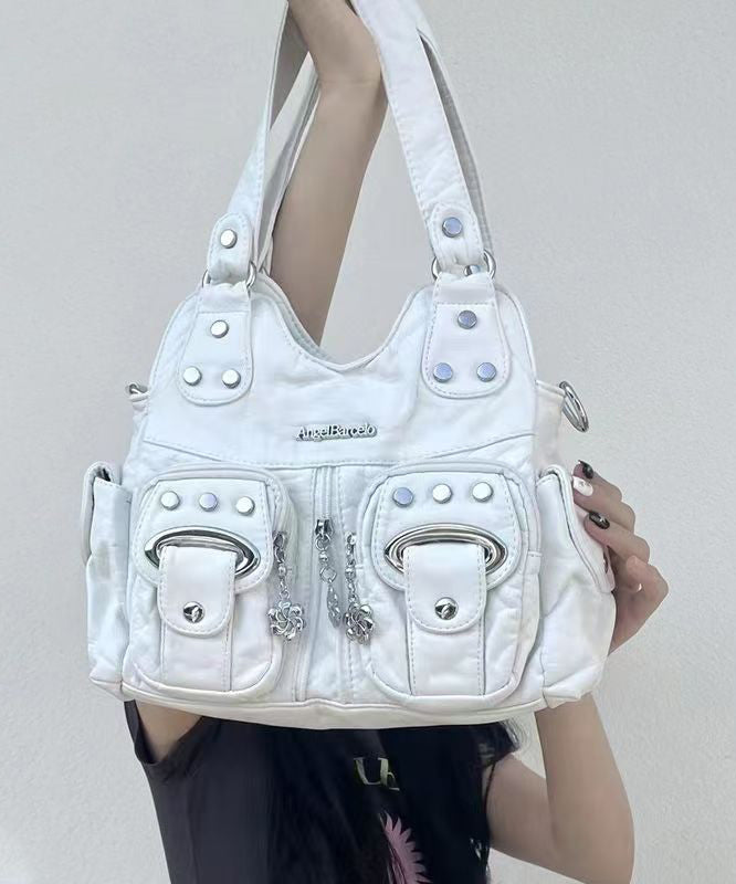 Introducing the Fashion Black Rivet Faux Leather Satchel Handbag MM047 - a stylish and luxurious addition to your wardrobe. Made with the finest faux leather and adorned with chic rivet details, this handbag exudes sophistication and exclusivity. Elevate your fashion game with this must-have accessory.