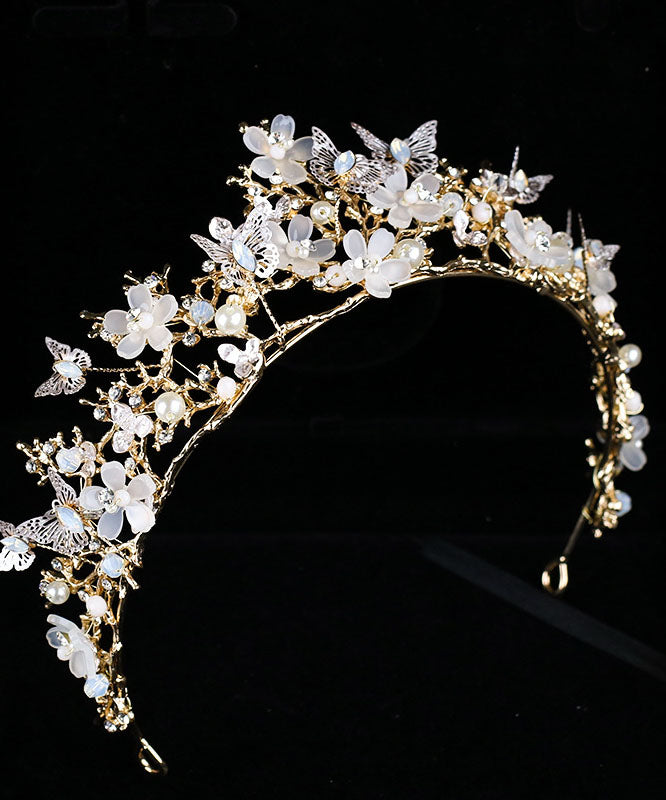 Fashion Light Gold Overgild Crystal Zircon Butterfly Floral Girl Crown IU035 TZ-FQ-HAI240802