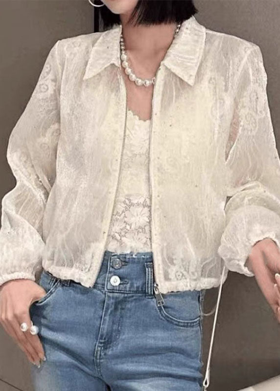Fine Black Peter Pan Collar Zircon Zippered UPF 50+ Coat Long Sleeve VB1051