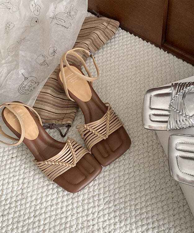 The Fine Splicing Buckle Strap Chunky Sandals in Brown Faux Leather are a perfect addition to your wardrobe.
