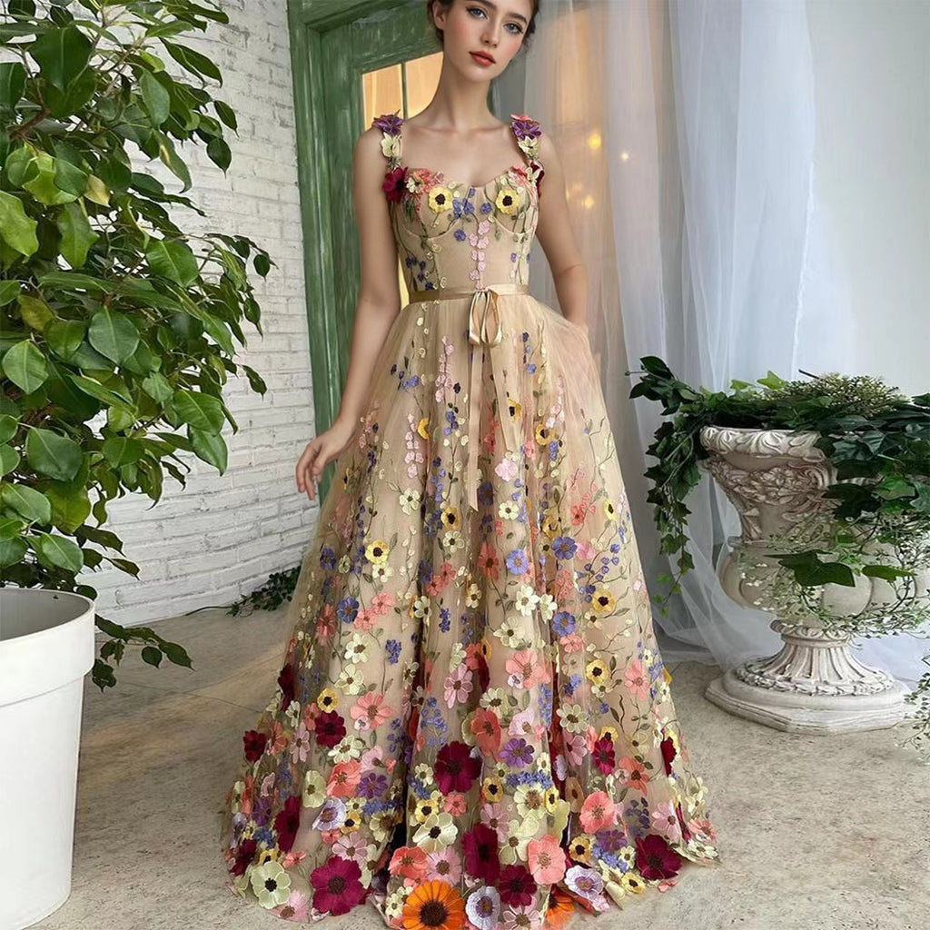 Experience the allure of our Floral Black Embroidered Lace Up Tulle Dress. This exquisite, sleeveless piece exudes elegance and sophistication, making it a must-have addition to your wardrobe.
