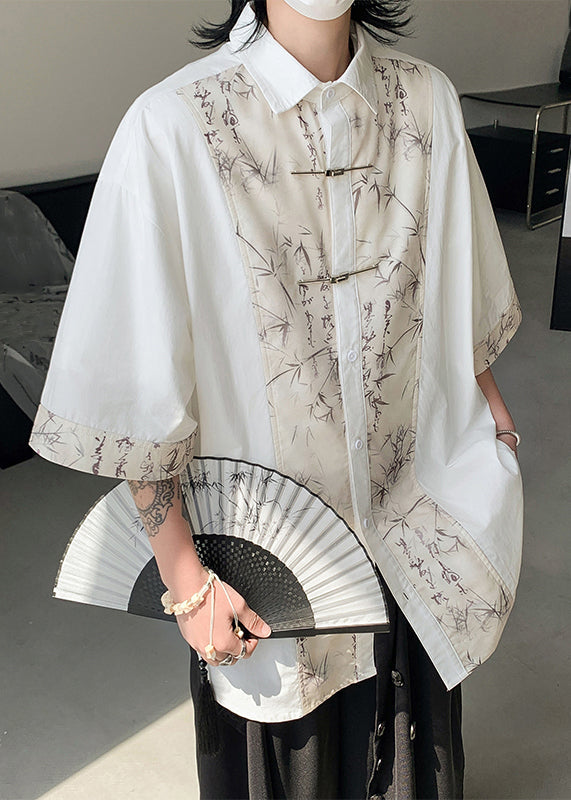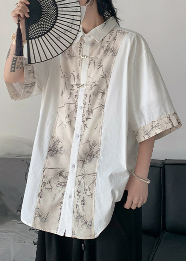 French Black Button Print Patchwork Cotton Men Shirt Summer YT080