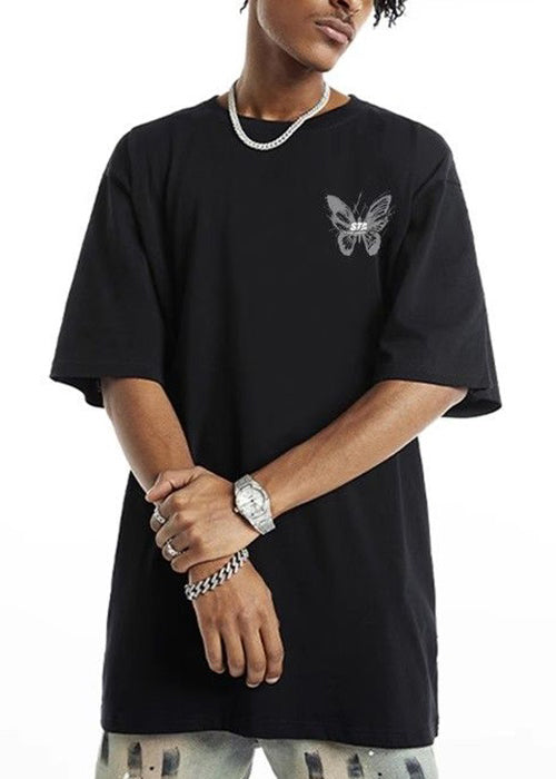 French Cyan Butterfly Print Cotton Mens T Shirts Summer LK057
