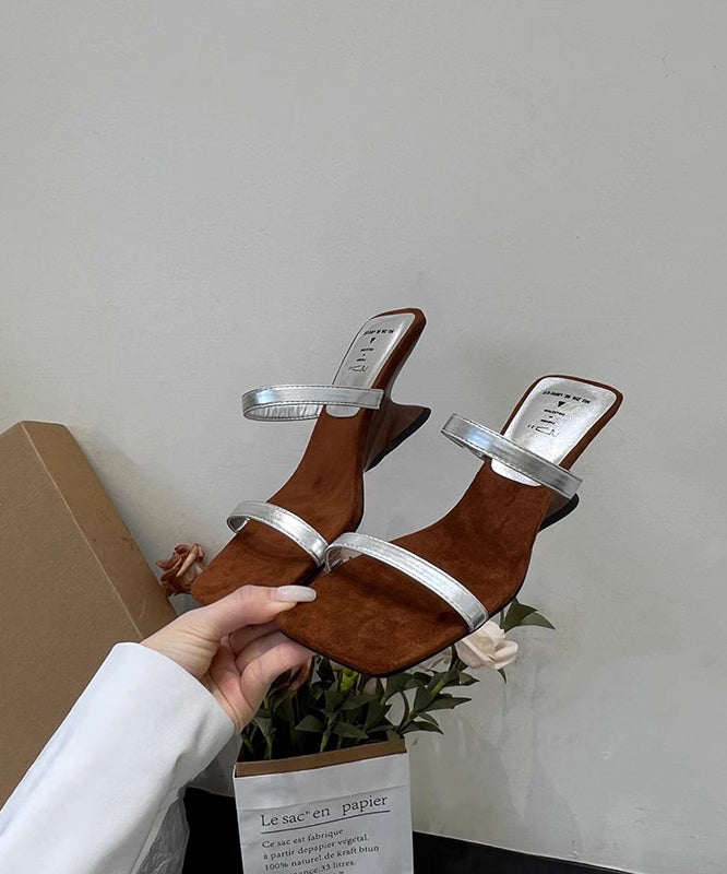 French Gold Wedge Heel Slide Sandals Peep Toe OI033