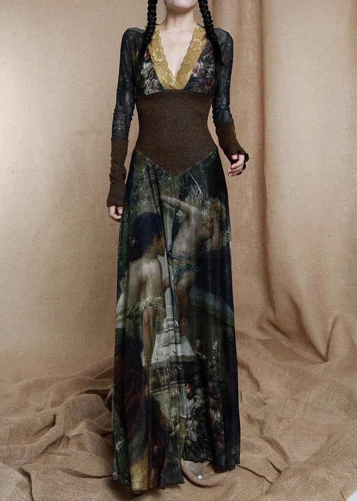 The French Photo Color V Neck Print Patchwork Cotton Dress Long Sleeve KK090 is evocative, to say the least, but that's why you're drawn to it in the first place.