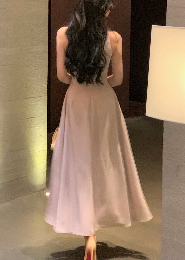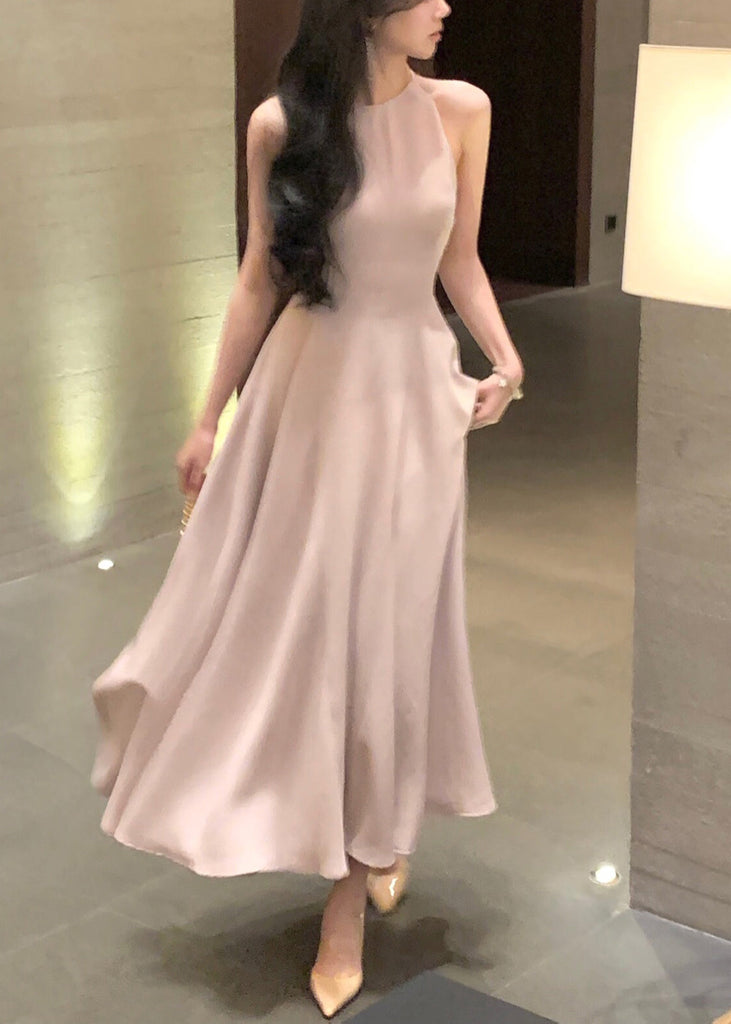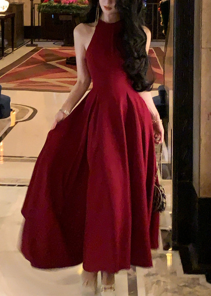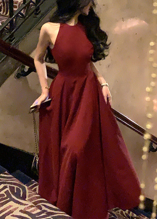 French Wine Red Zippered Solid Cotton Long Dresses Sleeveless XX015