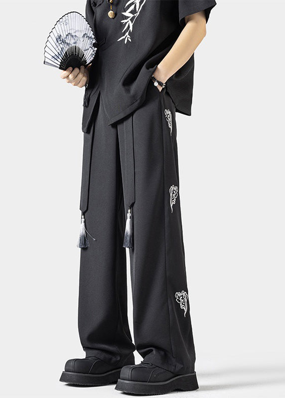 Expertly crafted by hand, these stylish beige men's pants feature intricate embroidery and convenient pockets, making them the perfect choice for a cool and comfortable summer look. Made with luxurious ice silk fabric, these pants are sure to keep you looking and feeling great all season long.