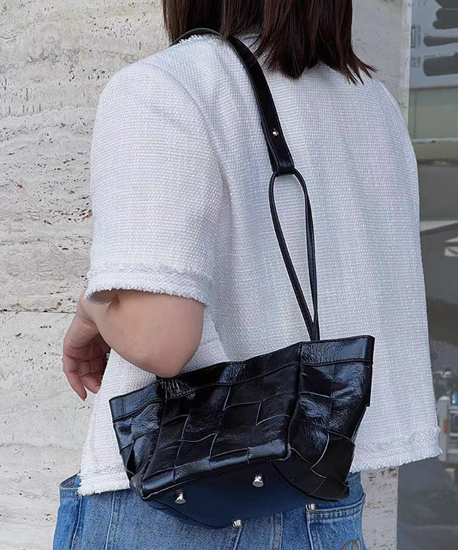 Handmade Black Plaid Patchwork Faux Leather Satchel Handbag UU1075 Bag-BGS240527