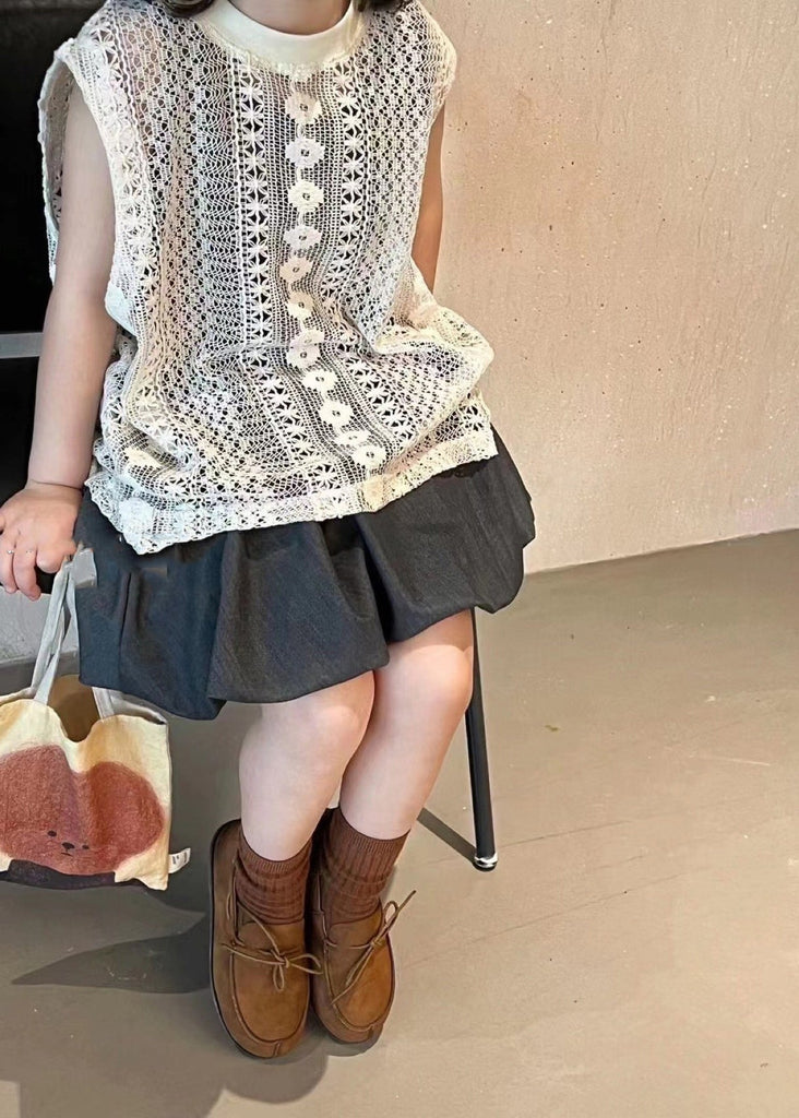 Handmade Hollow Out Knit Girls Vest And Pants Skirt Two Pieces Set Sleeveless SS1021