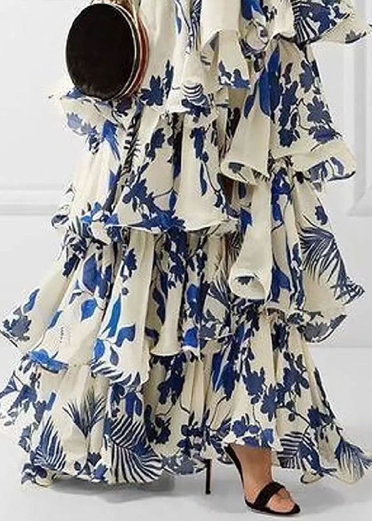 Imagine if you could be satisfied and content with your purchase. That can very much be your reality with the Loose Blue Ruffled Print Laxe Up Cotton Maxi Dress Sleeveless BB038.