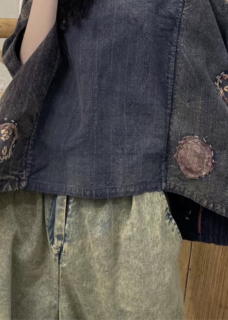 This cotton T-shirt features a loose fit and a unique colorblock design with a V-neckline and ruffled accents, perfect for a stylish summer look.