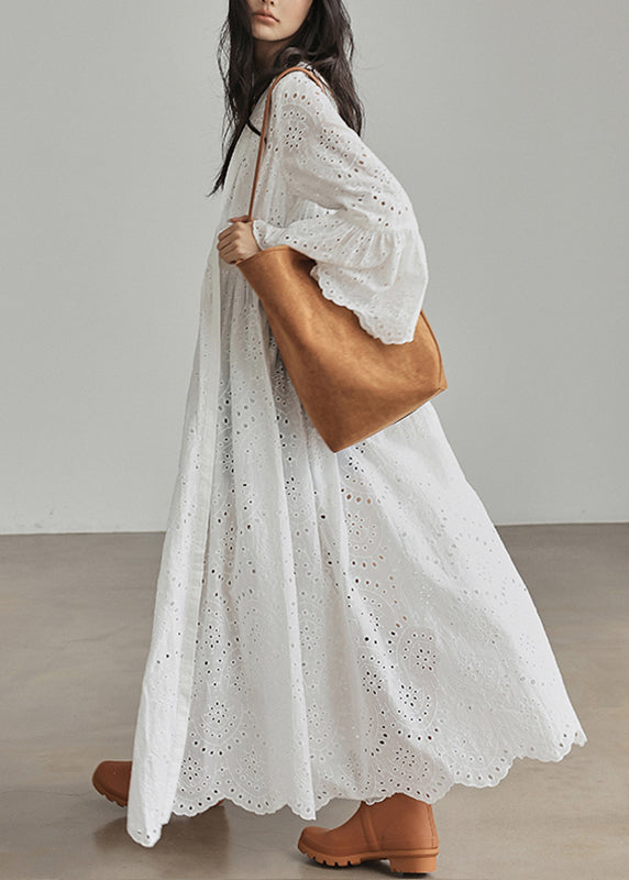 Loose White V Neck Patchwork Hollow Out Cardigans Flare Sleeve UU1043