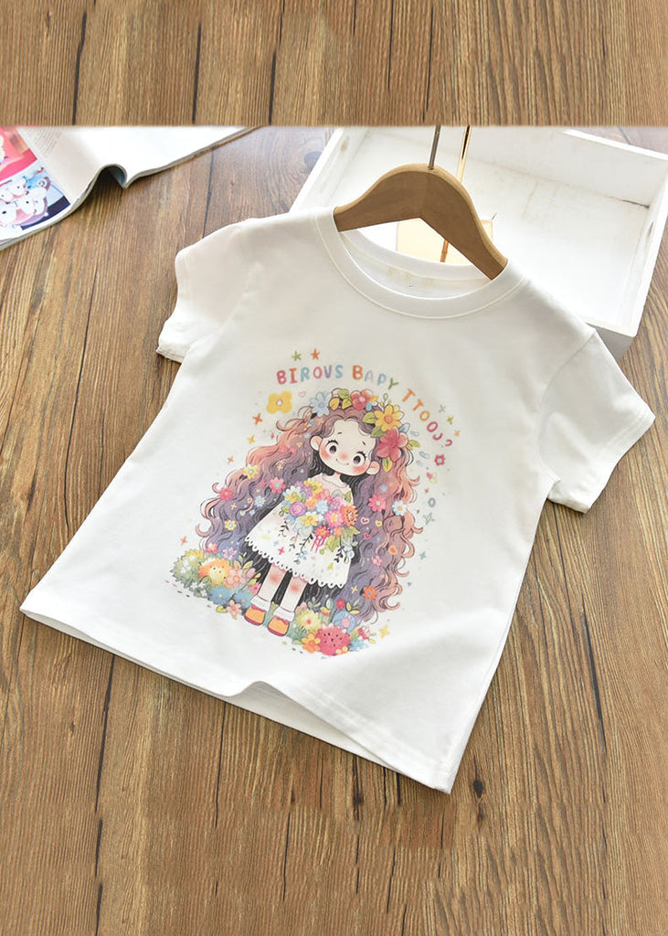 Lovely Pink Print Girls T Shirts Short Sleeve YU1090
