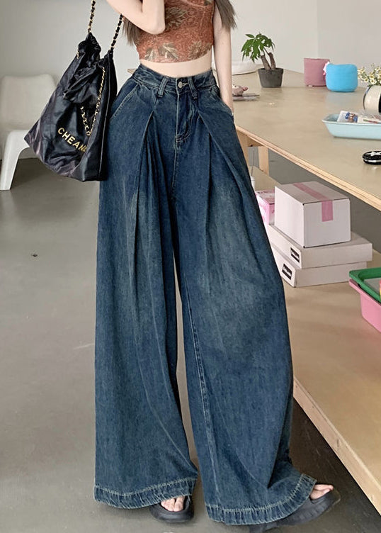 Modern Blue Wrinkled Pockets Denim Wide Leg Pants Summer PP010