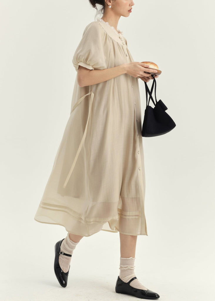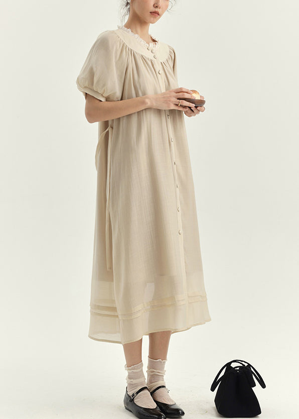 Introducing the exquisite New Apricot Lace Patchwork Cotton Shirts Dresses with delicate lantern sleeves. Impeccably crafted with a fusion of lace and patchwork, this garment exudes a sense of sophistication and luxury. Elevate your fashion game with this exclusive piece.