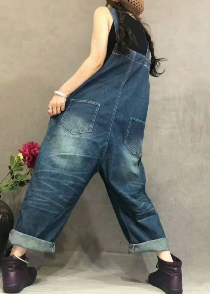 New Blue Embroidered Pockets Denim Jumpsuit Summer MN062