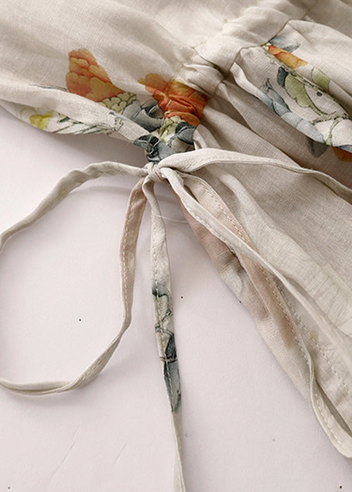 New O Neck Lace Up Print Cotton Dresses Summer GG048