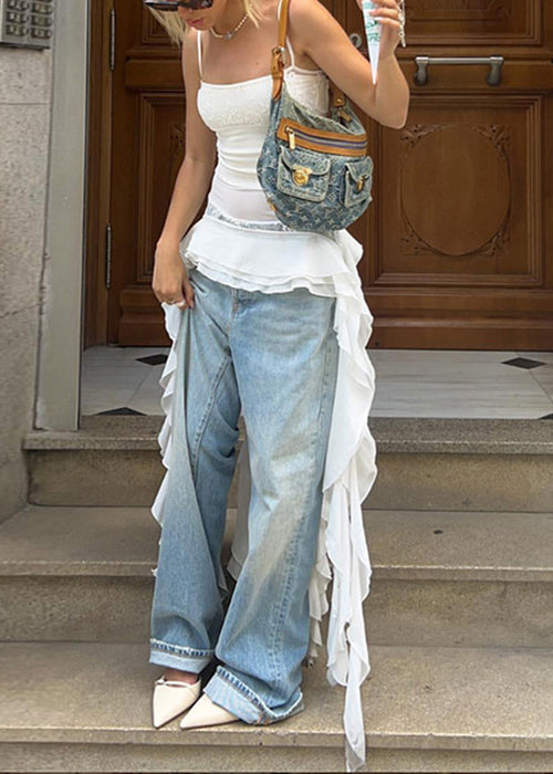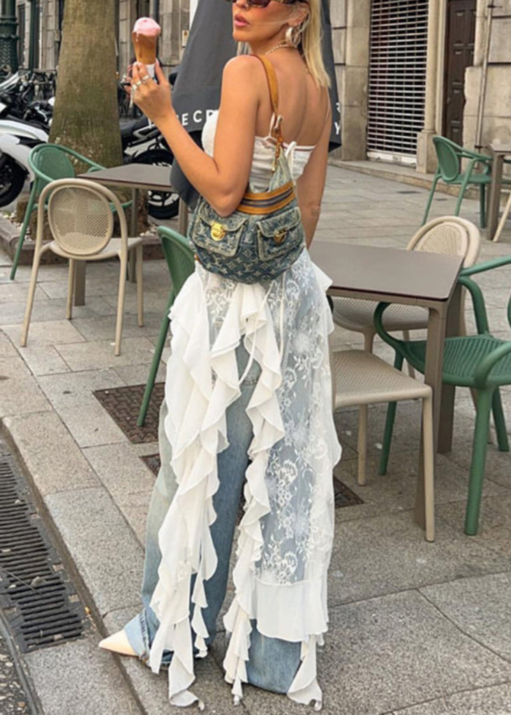 Elevate your style with the New White Asymmetrical Lace Patchwork Spaghetti Strap Tank Sleeveless, a testament to understated elegance and sophistication. With its intricate lace details and asymmetrical design, this premium garment exudes luxury and exclusivity. Perfect for any occasion, its sleek silhouette and delicate spaghetti straps will make you feel like a work of art. Don't miss out on this timeless piece for your wardrobe.