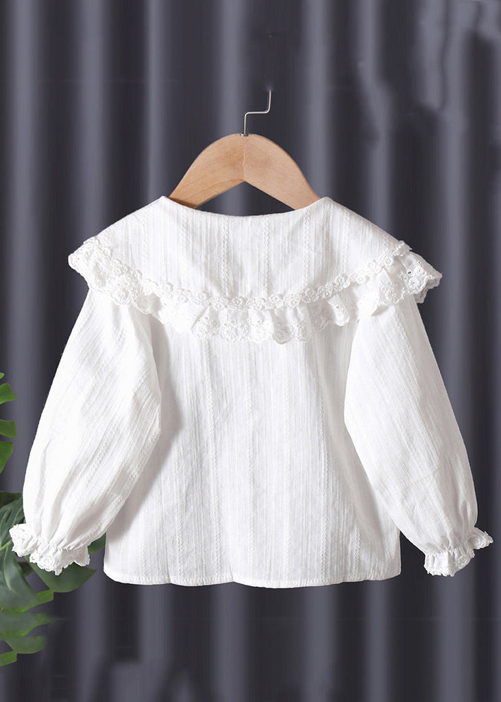 New White Peter Pan Collar Button Cotton Baby Blouse Flare Sleeve YU1029