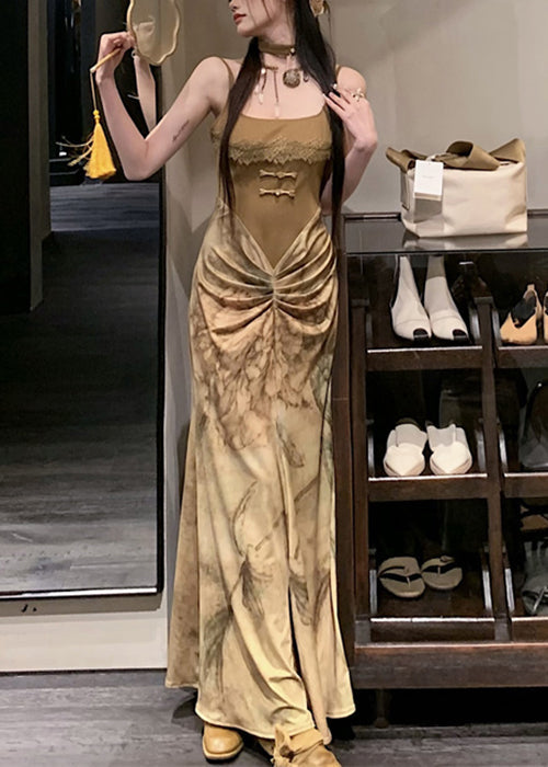 Experience elegance in our Novelty Olive Green Wrinkled Patchwork Cotton Spaghetti Strap DressSleeveless, crafted with precision and sophistication. This dress exudes exclusivity and luxury, made with premium fabric and featuring a unique patchwork design. The sleeveless style adds to its tasteful charm and can be dressed up or down for any occasion. Enhance your wardrobe with this exquisite dress.