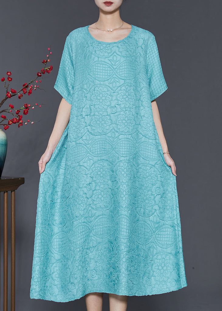 Organic Lake Blue Oversized Jacquard Cotton Holiday Dress Summer SD1064