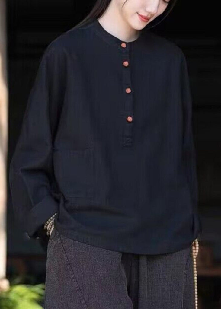 Imagine if you could be satisfied and content with your purchase. That can very much be your reality with the Organic Tea Green Stand Collar Linen Blouse Tops Long Sleeve LK006.