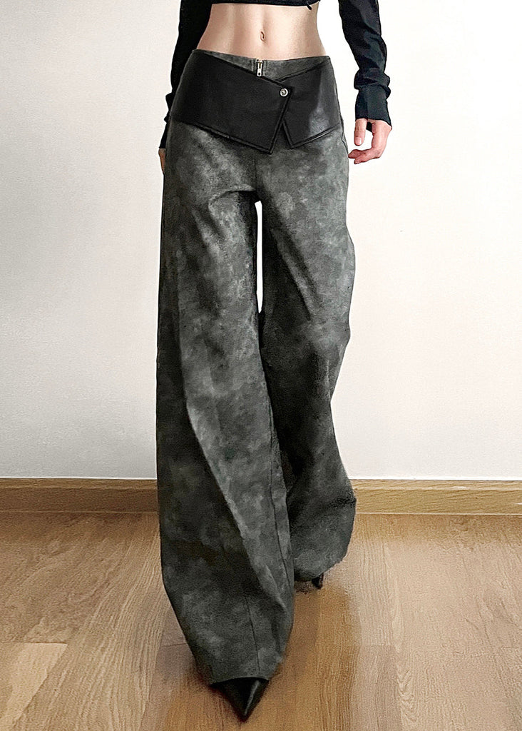Original Dark Gray High Waist Patchwork Faux Leather Pants Fall PP025