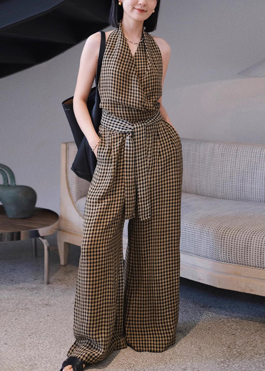 Original Plaid Tank Top And High Waist Wide Leg Pants Two Pieces Summer EE1007