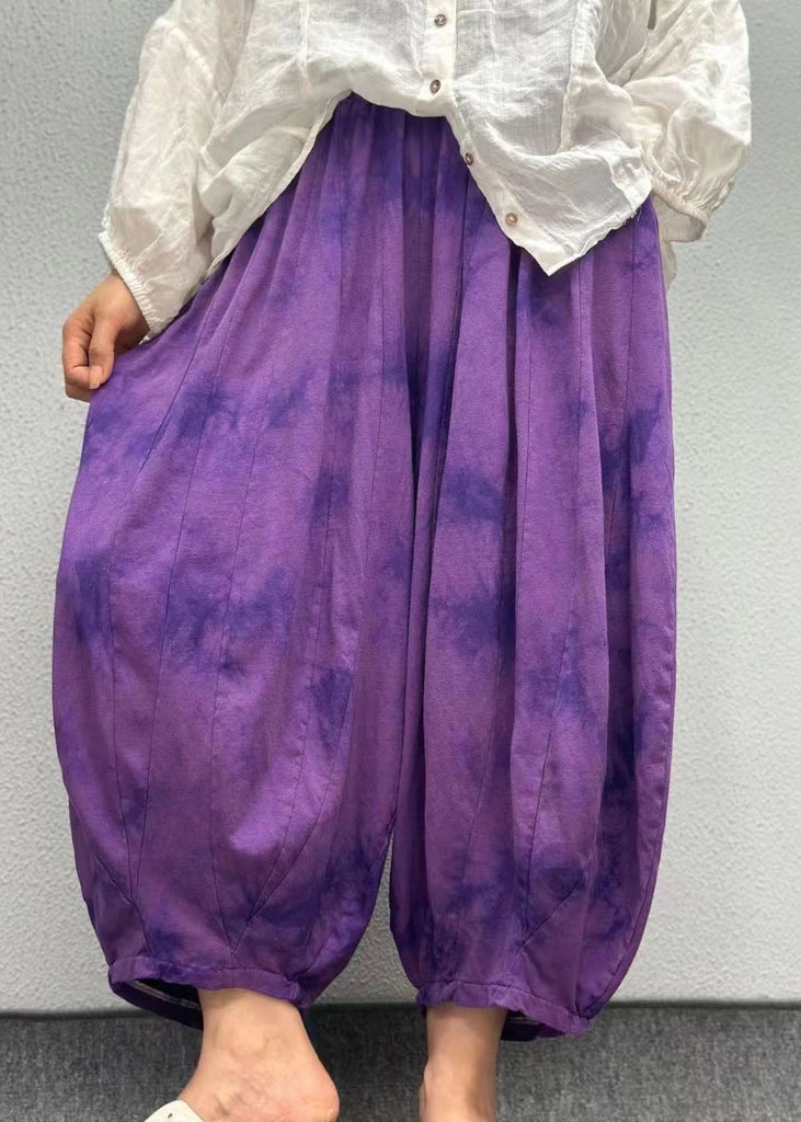 Plus Size Orange Pockets Print Elastic Waist Linen Lantern Pants Summer AP003